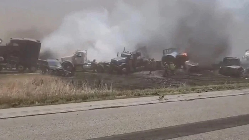 20 ഓളം ട്രക്കുകളും 40 മുതൽ 60 വരെ പാസഞ്ചർ കാറുകളും അപകടത്തിൽ പെട്ടു, തീപിടിച്ച രണ്ട് ട്രാക്ടർ ട്രെയിലറുകൾ ഉൾപ്പെടെ.