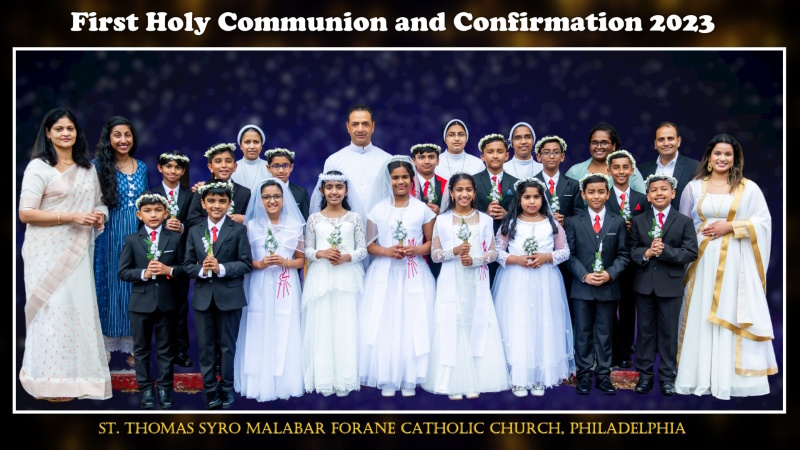 ഫിലാഡല്ഫിയ: സെന്റ് തോമസ് സീറോമലബാര് ഫൊറോനാ ദേവാലയത്തിലെ മതബോധനസ്കൂള് കുട്ടികളുടെ പ്രഥമദിവ്യകാരുണ്യ സ്വീകരണവും, സ്ഥൈര്യലേപനകൂദാശയും ഭക്തിനിര്ഭരമായ ശുശ്രൂഷകളോടെ നടന്നു. ഇടവകവികാരി റവ. ഫാ. കുര്യാക്കോസ് കുമ്പക്കീല്, കപ്പുച്ചിന് സഭാംഗമായ എബി അച്ചന് എന്നിവര് കാര്മ്മികരായി അര്പ്പിക്കപ്പെട്ട ദിവ്യബലിമധ്യേ ആയിരുന്നു കൂദാശകളുടെ പരികര്മ്മം.