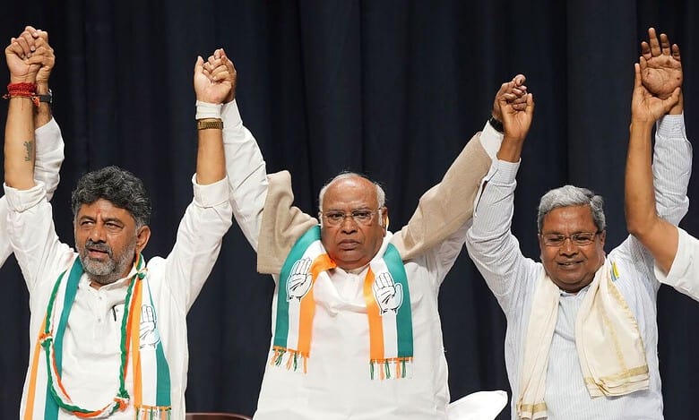 കർണാടക നിയമസഭാ തെരഞ്ഞെടുപ്പിൽ 224ൽ 135 സീറ്റുകൾ കോൺഗ്രസ് നേടിയപ്പോൾ ഭരണകക്ഷിയായ ബിജെപി 66 ആയും ജെഡിഎസ് 19 സീറ്റുകളിലേക്കും ചുരുങ്ങി.