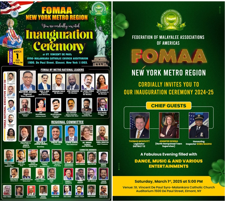 ശ്വേതാ മേനോൻ, മേയർ റോബിൻ ഇലക്കാട്ട്, ഫോമാ പ്രസിഡന്റ് ജേക്കബ് തോമസ്, ജനറൽ സെക്രട്ടറി ഓജസ് ജോൺ, ട്രഷറർ ബിജു തോണികടവിൽ, വൈസ് പ്രസിഡന്റ് സണ്ണി വള്ളികളം, ജോയിന്റ് സെക്രട്ടറി ഡോ. ജയ്മോൾ ശ്രീധർ ,ജോയിന്റ് ട്രഷറർ ജയിംസ് ജോർജ് തുടങ്ങിയവർ ചടങ്ങിൽ ആശംസകൾ അർപ്പിച്ചു സംസാരിച്ചു, കൾച്ചറൽ കമ്മറ്റി സെക്രട്ടറി ഡാനിഷ് തോമസ് ഈ പരിപാടിയിൽ പങ്കെടുത്ത എല്ലാവർക്കും നന്ദിയർപ്പിച്ചു.