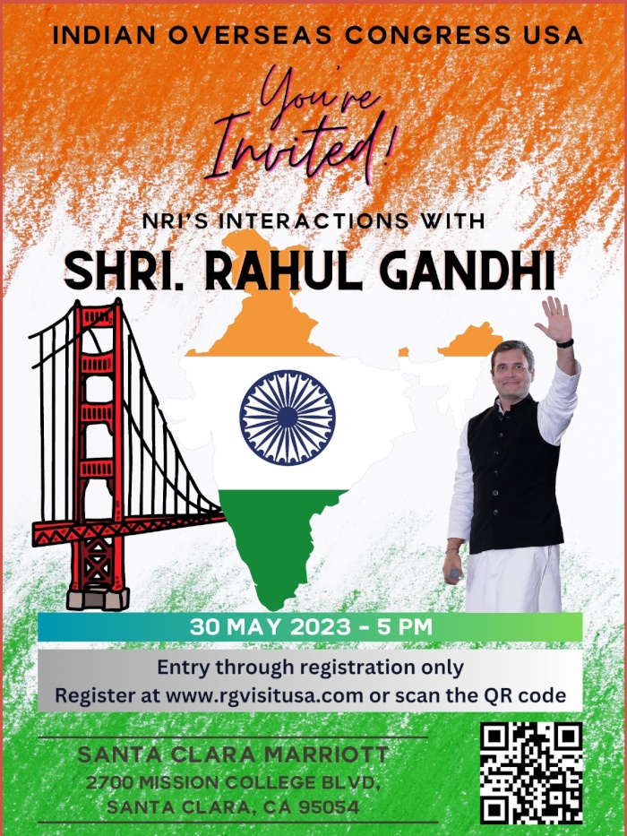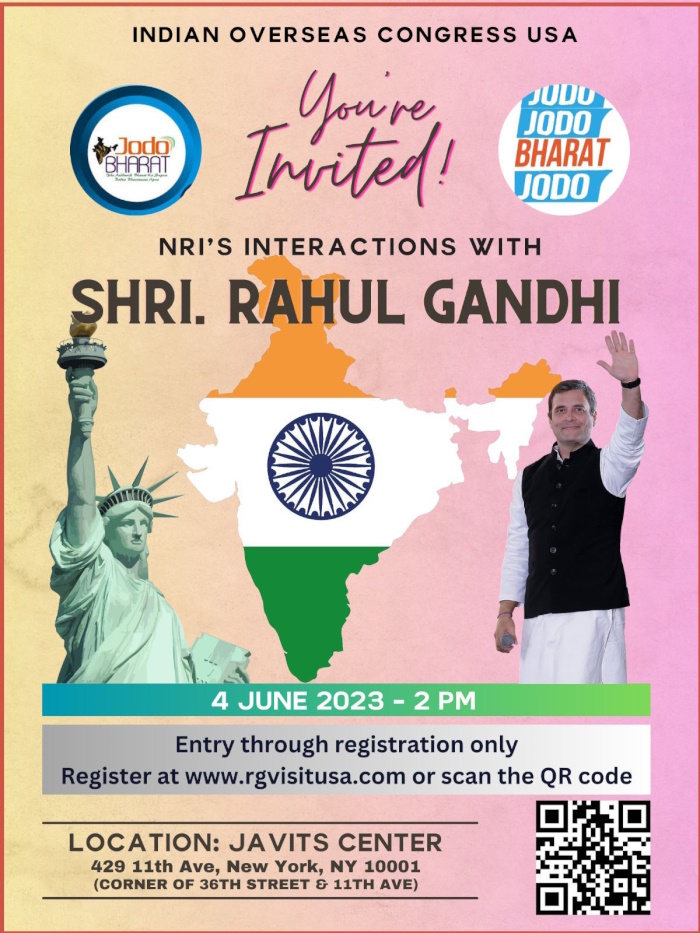 New York: Congress leader Rahul Gandhi is visiting the United States from May end through June 1st week. The visit is key after Congress’s glorious win in the Karnataka assembly election and considering the upcoming 2024 Loksabha elections. Rahul Gandhi will be visiting the west coast and east coast, visiting various universities, interacting with the students and professionals, and the Indian Overseas Congress USA is organizing a big event in New York City. The IOC leadership team under the eminent leadership of Dr Sam Pitroda, Global Chairman of the IOC, has started the preparations for the events. The visit is going to be key to the Congress party back in India, to gain the NRI’S support from all over the world, this visit is considered as a continuation of Rahul’s recent visit to London. Join hands for a secular and democratic India is the slogan for the events planned by NRI in the country. The NRIs in the United States of America get the much-awaited opportunity to interact with Rahul Gandhi and share our thoughts for the future of our country, says the IOC USA president Mohinder Singh Gilzian. Call for more details – Rajeev Mohan – +1 (848) 256-3381, Joseph Idicula – +1 ( 201) 421-5303
