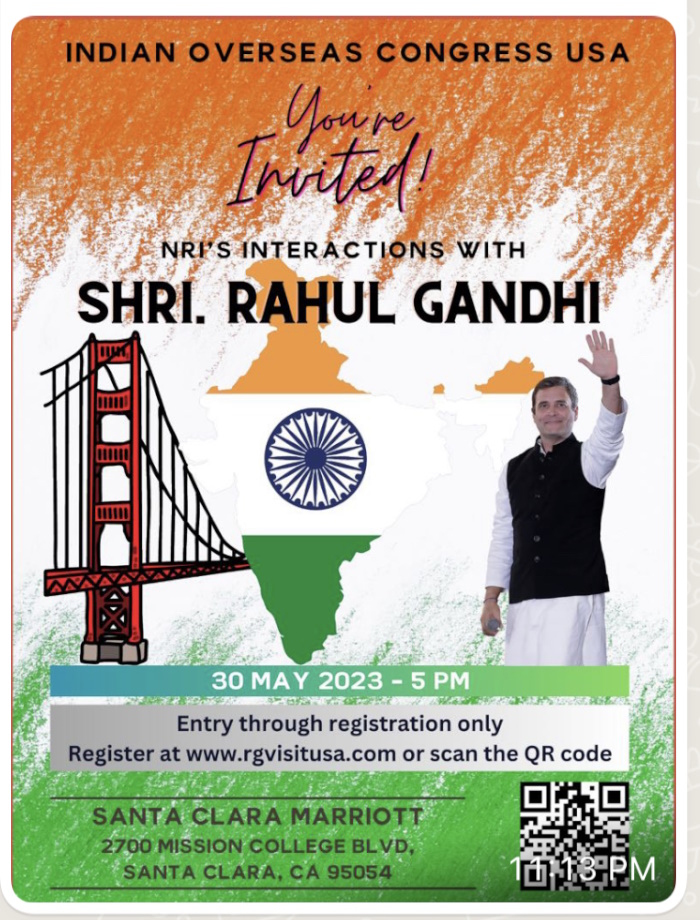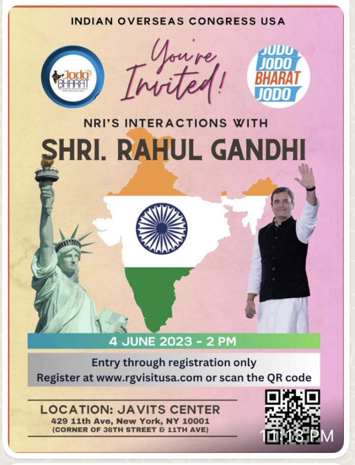 മെയ് 30 നു കാലിഫോര്ണിയയിൽ ആരംഭിച്ചു ജൂൺ 4 നു ന്യൂയോർക്കിൽ സമാപിക്കുന്ന രാഹുൽ ഗാന്ധിയുടെ അമേരിക്കൻ സന്ദർശനത്തിന് ഇന്ത്യൻ ഓവർസീസ് കോൺഗ്രസ് ചെയർമാൻ സാം പിട്രോഡയുടെ നേതൃത്വത്തിൽ ഒരുക്കങ്ങൾ പുരോഗമിക്കുകയാണ്.