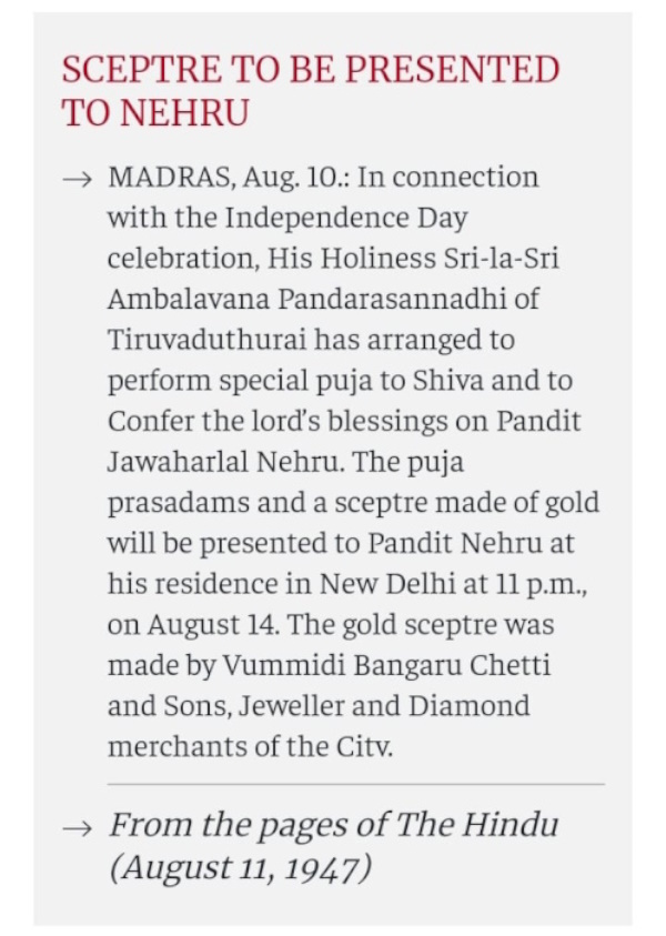 4. എന്ത് കൊണ്ടാണ് ചെങ്കോൽ മൗണ്ട്ബാറ്റൺ കൈമാറാതെ തിരുവാടുതുറൈ മഠാധിപതിയെക്കൊണ്ട് നൽകിച്ചത്?