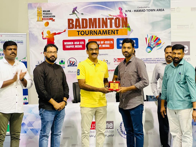 ബഹ്റൈന്: കൊല്ലം പ്രവാസി അസ്സോസിയേഷൻ ഹമദ് ടൌൺ ഏരിയ കമ്മിറ്റിയുടെ നേതൃത്വത്തിൽ സംഘടിപ്പിച്ച ബാഡ്മിന്റൺ ടൂർണമെന്റിൽ ഡെറിൻ, സുജിത് സഖ്യം വിജയികളായി. വിനീഷ്, മിഥുൻ സഖ്യം രണ്ടാം സ്ഥാനവും ഫസറുൾ റഹിമാൻ , നജിർ ബുഹാരി സഖ്യം മൂന്നാം സ്ഥാനവും കരസ്ഥമാക്കി. ഇന്റർനാഷണൽ റഫറി ഷാനിൽ അബ്ദുൽ റഹിം മുഖ്യാതിഥിയായി പങ്കെടുത്ത സമ്മാന ദാന ചടങ്ങിൽ വിജയികൾക്ക് ക്യാഷ് അവാർഡും, ട്രോഫിയും, മെഡലുകളും വിതരണം ചെയ്തു. കെ.പി.എ പ്രസിഡന്റ് നിസാർ കൊല്ലം, ജനറൽ സെക്രട്ടറി ജഗത് കൃഷ്ണകുമാർ, അൽ ഹിലാൽ പ്രതിനിധി അനസ്, സർവാൻ ഫൈബർ ഗ്ലാസ് മാനേജർ വിജോ, കെ.പി.എ ട്രെഷറർ രാജ് കൃഷ്ണൻ, സെക്രട്ടറിമാരായ അനോജ് മാസ്റ്റർ, സന്തോഷ് കാവനാട് , അസ്സി. ട്രെഷറർ ബിനു കുണ്ടറ, സെൻട്രൽ കമ്മിറ്റി അംഗങ്ങളായ സജീവ് ആയൂർ, നവാസ് ജലാലുദ്ദീൻ, മനോജ് ജമാൽ, നിഹാസ് എന്നിവർ ചടങ്ങിൽ സന്നിഹിതരായിരുന്നു. ഹമദ് ടൌൺ ഏരിയ കോ-ഓർഡിനേറ്റർമാരായ വി.എം പ്രമോദ്, അജിത് ബാബു , ഏരിയ പ്രസിഡന്റ് പ്രദീപ് കുമാർ, ഏരിയ കമ്മിറ്റി അംഗങ്ങളായ വിനീത്, വിഷ്ണു, റാഫി, എന്നിവർ ടൂർണമെന്റിന് നേതൃത്വം നൽകി. ജോയ്, വിനോദ് എന്നിവർ നിയന്ത്രിച്ചു.