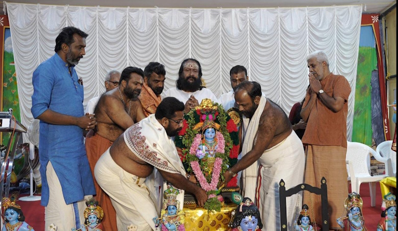കൃഷ്ണ വിഗ്രഹം ജൂൺ 18 ഞായറാഴ്ച വൈകുന്നേരം ക്ഷേത്ര സന്നിധിയിൽ വെച്ച് നടന്ന പ്രൗഢഗംഭീരമായ ചടങ്ങിൽ വെച്ച് മന്ത്രയുടെ സ്പിരിച്വല് കോഓര്ഡിനേറ്ററും, കൺവെൻഷനിലെ ആദ്ധ്യാത്മിക പ്രഭാഷകരിൽ ഒരാളു കൂടിയായ ബ്രഹ്മശ്രീ മനോജ് വി നമ്പൂതിരി ക്ഷേത്ര ഭാരവാഹികളിൽ നിന്ന് സ്വീകരിച്ചു.