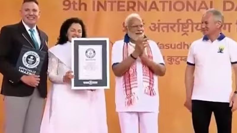 വാഷിംഗ്ടണ്: ലോക യോഗ ദിനത്തോടനുബന്ധിച്ച് ഐക്യരാഷ്ട്ര സഭയില് പ്രധാനമന്ത്രി നരേന്ദ്ര മോദിയുടെ നേതൃത്വത്തില് നടത്തിയ യോഗാ പ്രദര്ശനത്തിന് ഗിന്നസ് റെക്കോര്ഡ്. യോഗ റിട്രീറ്റില് ഏറ്റവുമധികം രാജ്യങ്ങള് പങ്കെടുത്തതിന്റെ റെക്കോര്ഡാണ് ഈ പ്രകടനം നേടിയത്. ഏകദേശം 135 രാജ്യങ്ങളില് നിന്നുള്ള പ്രതിനിധികള് ഈ യോഗാഭ്യാസത്തില് പങ്കെടുത്തു.