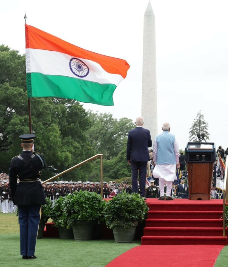 യുഎസ് പ്രസിഡന്റും ഇന്ത്യൻ പ്രധാനമന്ത്രിയും തമ്മിലുള്ള സൗഹൃദം പൂർണമായി പ്രദർശിപ്പിച്ചുകൊണ്ട് ബൈഡന് ഭരണകൂടം മോദിക്ക് ചുവന്ന പരവതാനി വിരിച്ചപ്പോൾ, ആഗോള നന്മയ്ക്കും സമാധാനത്തിനും സ്ഥിരതയ്ക്കും സമൃദ്ധിക്കും വേണ്ടി ഒരുമിച്ച് പ്രവർത്തിക്കാൻ ഇന്ത്യയും യുഎസും പ്രതിജ്ഞാബദ്ധമാണെന്ന് മോദി പ്രതികരിച്ചു.