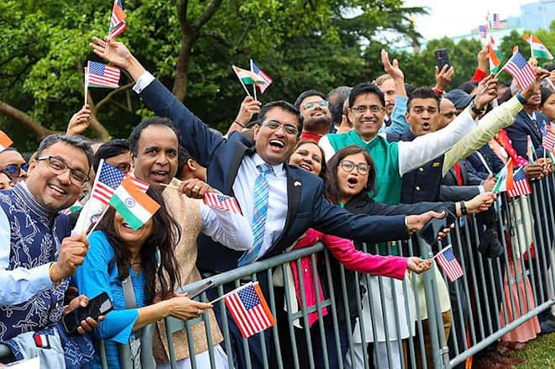 യു എസ് തലസ്ഥാനത്ത് ഒത്തുകൂടിയ ആയിരക്കണക്കിന് ഇന്ത്യൻ-അമേരിക്കക്കാർ സ്വാഗത ചടങ്ങിൽ പങ്കെടുത്തു. ഇന്ത്യൻ അമേരിക്കക്കാർ ‘USA USA’ എന്നും ‘ഭാരത് മാതാ കീ ജയ്’ എന്നും ‘മോദി മോദി’ എന്നും വിളിച്ചുകൊണ്ടിരുന്നു.