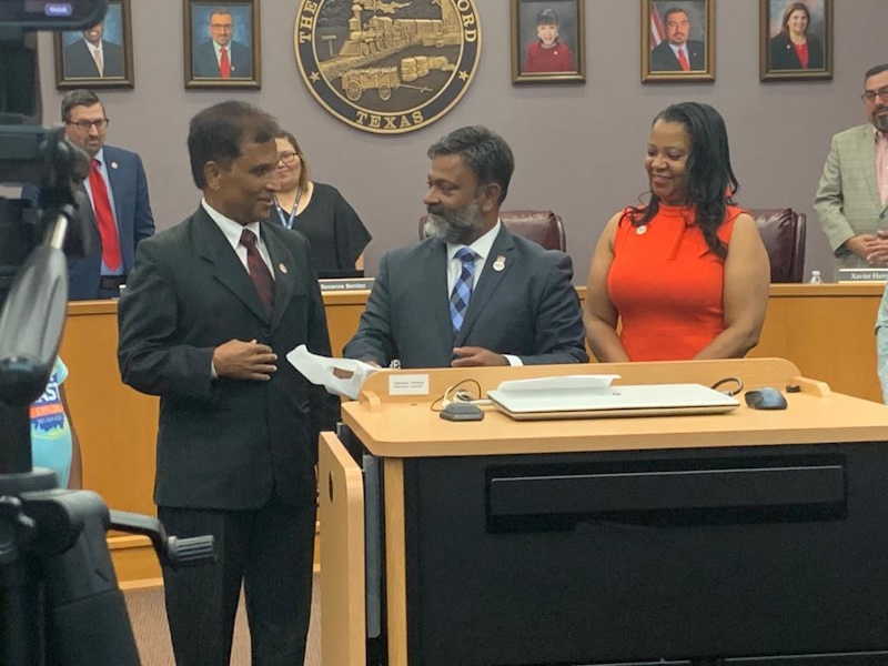 ഹ്യൂസ്റ്റൺ: സ്റ്റാഫോർഡിൻെറ ആദ്യ മലയാളി മേയർക്ക് സത്യവാചകം ചൊല്ലിക്കൊടുത്തത് മറ്റൊരു മലയാളി മേയർ.