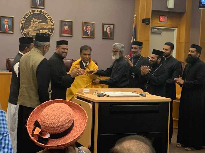 ഇതിനു നിമിത്തമായത് സ്റ്റാഫോർഡിൻറെ പുതിയ മേയറായി തിരഞ്ഞെടുക്കപ്പെട്ട കെൻ മാത്യു. കെൻ മാത്യുവിന് സത്യവാചകം ചൊല്ലിക്കൊടുത്തത് തൊട്ടടുത്ത മിസോറി സിറ്റി മേയർ റോബിൻ ഇലക്കാട്ട്. ചൊവ്വാഴ്ച വൈകുന്നേരം അഞ്ചുമണിക്കു സിറ്റി ഹാൾ നിറഞ്ഞു കവിഞ്ഞ ഇന്ത്യക്കാർ ആഫ്രിക്കൻ അമേരിക്കൻസ് ഹിസ്പാനിക് എന്നിവർ ഉൾപ്പെട്ട പുരുഷാരം ചടങ്ങുകൾക്ക് സാക്ഷിയായി.