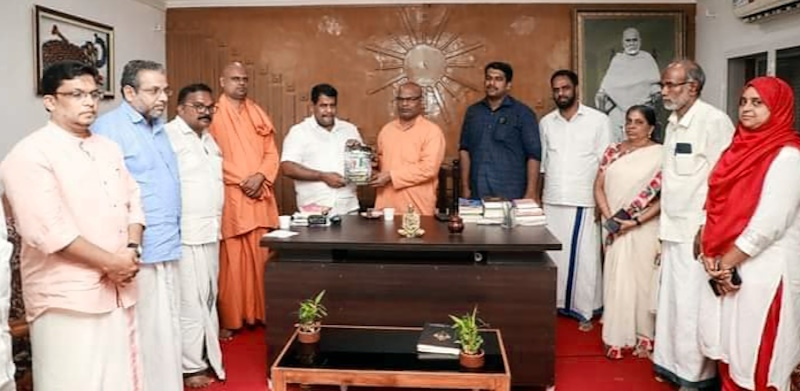 ഫോട്ടോ: വെൽഫെയർ പാർട്ടി സംസ്ഥാന പ്രസിഡണ്ട് റസാഖ് പാലേരിയെ ആലുവ അദ്വൈതാശ്രമത്തിൽ സ്വാമി ധർമചൈതന്യ സ്വീകരിക്കുന്നു. സ്വാമി പ്രബോധതീർത്ഥ സമീപം.