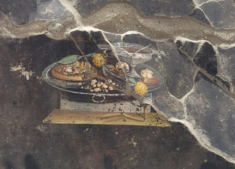 The ancient painting, believed to be the forerunner of the modern pizza, was discovered in the middle of a half-broken wall during recent excavations at the archaeological site. In addition to the pizza paintings, new excavations have also revealed the courtyard of a house that includes an annexe with a bakery that was first discovered in the late 19th century. The painting shows a silver platter with flatbreads, fresh and dried fruits such as pomegranates and dates, next to cups of wine. The Italian Ministry of Culture said that archaeologists believe that the flat bread depicted in the painting would have been eaten with said fruits or dried fruits or eaten with spices and a type of pesto sauce.