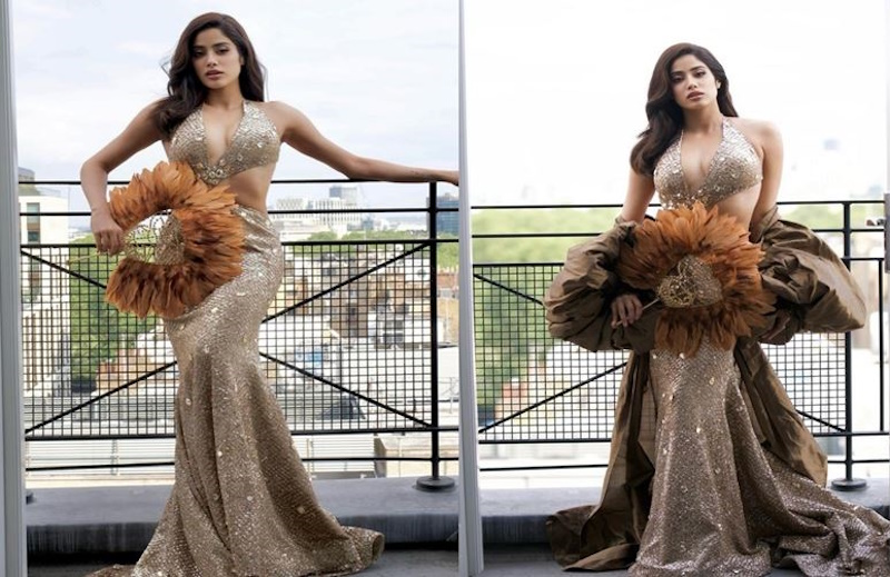 In the latest photos of Jahnavi Kapoor, you can see that she has carried a golden shimmery cutout detailing gown. Wearing this gown, she is seen standing in the balcony giving more than one hot pose. She has completed her look with this dress with nude makeup and brown shade lipstick. At the same time, she has also carried a lion mask in her hand along with this golden gown. Her style in every picture will win your heart. Let me tell you, this stylish gown of Jahnavi Kapoor has been designed by Bollywood’s famous fashion designer Manish Malhotra.