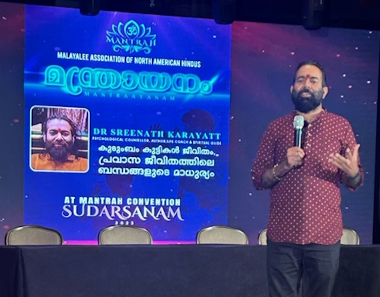 ഹ്യൂസ്റ്റൺ: കുടുംബ ബന്ധങ്ങളുടെ ഇഴയടുപ്പം ഭാഷയാണെന്ന് പ്രശസ്ത ട്രയിനറും , സൈക്കോളജിക്കൽ കൗൺസിലറുമായ  ഡോ. ശ്രീകാന്ത് കാരയാട്ട് അഭിപ്രായപ്പെട്ടു. ഹ്യൂസ്റ്റണിലെ സൊണസ്റ്റാ ഹോട്ടലിൽ ആരംഭിച്ച മന്ത്രയുടെ ഒന്നാം ഗ്ലോബൽ കൺവൻഷൻ രണ്ടാം ദിവസം പിന്നിടുമ്പോൾ ” കുടുംബം കുട്ടികൾ ജീവിതം പ്രവാസ ജീവിതത്തിലെ ബന്ധങ്ങളുടെ മാധുര്യം ” എന്ന വിഷയത്തിൽ സംസാരിക്കുകയായിരുന്നു അദ്ദേഹം. ഭാഷയ്ക്ക് വ്യത്യസ്തമായ അർത്ഥ തലമുള്ള ഒന്നാണ്. എല്ലാവരേയും മനസിലാക്കുന്നതിനും അറിയുന്നതിനും നമ്മിൽ രൂപപ്പെടുന്ന ഭാഷയ്ക്കെ കഴിയു . ജീവിതത്തിൽ കുടുംബാംഗങ്ങളെ പരസ്പരം ചേർത്തു പിടിക്കുവാനും ഉപദേശങ്ങൾ കുടുംബങ്ങളിൽ കുറയ്ക്കുവാനും അദ്ദേഹം പറഞ്ഞു. കാരണം ഉപദേശങ്ങൾ കൊണ്ട് ആരും രക്ഷപെട്ട ചരിത്രമില്ലെന്നും ഉപദേശങ്ങളേക്കാൾ ചേർത്തു നിർത്തലുകൾക്കാണ് നന്മയെന്നും അദ്ദേഹം കൂട്ടിച്ചേർത്തു. അറിവാകുന്നു ശക്തി. അറിഞ്ഞു ചെയ്യുമ്പോൾ മാത്രമെ ചെയ്യുന്ന കർമ്മത്തിന്റെ ഉദ്ദേശം പൂർണ്ണമാകുന്നുള്ളു. അജ്ഞാനത്തെ നീക്കി ജ്ഞാനത്തെ പ്രാപിക്കാനാണ് ഓരോ ജീവനും പിറവിയെടുക്കുന്നത്. അതുകൊണ്ട് ഓരോ ജീവനേയും നമുക്ക് ഹൃദയത്തോട് ചേർക്കുവാൻ സാധിക്കണമെന്നും അദ്ദേഹം പറഞ്ഞു.