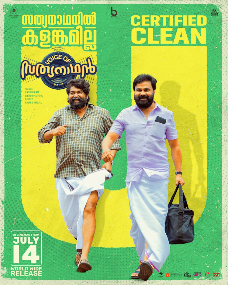 തിയേറ്ററുകളിൽ കുടുംബ പ്രേക്ഷകർക്ക് ആസ്വദിക്കാനുള്ള ഫൺ റൈഡർ ചിത്രം വോയ്സ് ഓഫ് സത്യനാഥൻ സെൻസറിംഗ് കഴിഞ്ഞു. ചിത്രത്തിന് ക്ലീൻ യു സെർട്ടിഫിക്കറ്റ് ആണ്. സൂപ്പർ ഹിറ്റ് സിനിമകൾ സമ്മാനിച്ച സംവിധായകൻ റാഫി – ജനപ്രിയനായകൻ ദിലീപ് കൂട്ടുകെട്ട് ഇത്തവണയും പ്രേക്ഷകരുടെ പ്രതീക്ഷകൾക്കനുസരിച്ച് തിയേറ്ററിൽ നർമ്മത്തിന് പ്രധാന്യം നൽകി ആസ്വാദന മിഴിവേകുന്ന കാഴ്ചകൾ സമ്മാനിക്കുമെന്നുറപ്പ് ചിത്രത്തിന്റെ ട്രൈലെർ തന്നെ നൽകുന്നു. ജൂലൈ 14നാണ് ചിത്രം തിയേറ്ററുകളിലേക്കെത്തുന്നത്.