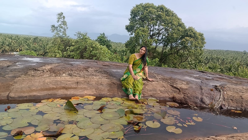 ചെങ്കുത്തായ പാറകളും വലിയ ഉരുളൻ പാറകളും പല ഭാഗത്തായിട്ടുണ്ട്. കേറിചെല്ലുമ്പോൾ ആദ്യം നോട്ടമെത്തുന്നത് പാറയിടുക്കിൽ കാണുന്ന ഒരു ആമ്പൽ കുളമാണ്. പൂക്കൾ ഇല്ലെങ്കിലും മനോഹരമായ ഒരു ദൃശ്യഭംഗി. അങ്ങിങ്ങായി ചെറിയ ആമ്പൽ കുളങ്ങൾ പാറക്കെട്ടിൽ കാണാനുണ്ടായിരുന്നു. ഇടതു ഭാഗത്തായി കാണുന്ന ഒറ്റമരം, മുകളിൽ ക്ഷേത്രത്തിന്റെ പണികൾ നടന്നു കൊണ്ടിരിക്കുന്നുണ്ടായിരുന്നു.