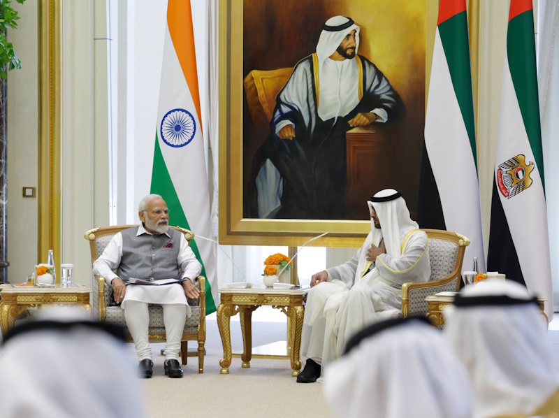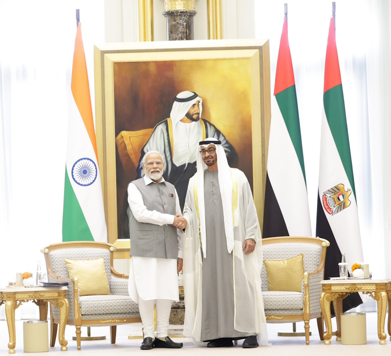 “ഉഭയകക്ഷി ബന്ധത്തിൽ ഒരു പുതിയ നാഴികക്കല്ല് സ്ഥാപിക്കുന്നു. പ്രധാനമന്ത്രി നരേന്ദ്രമോദിയും പ്രസിഡന്റ് എച്ച്എച്ച് ഷെയ്ഖ് മുഹമ്മദ് ബിൻ സായിദ് അൽ നഹ്യാനും പ്രതിനിധി തല ചർച്ചകളും ഏകീകൃത കൂടിക്കാഴ്ചയും നടത്തി. വ്യാപാരം, നിക്ഷേപം, ഫിൻടെക്, ഊർജം, പുനരുപയോഗം, കാലാവസ്ഥാ പ്രവർത്തനം, ഉന്നത വിദ്യാഭ്യാസം, ജനങ്ങളുമായുള്ള ബന്ധം എന്നിവയുൾപ്പെടെ ഉഭയകക്ഷി സഹകരണത്തിന്റെ വിശാലമായ മേഖലകളിൽ ചർച്ചകൾ സ്പർശിച്ചു, ”എംഇഎ വക്താവ് ട്വീറ്റ് ചെയ്തു.