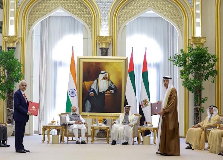 അബുദാബിയിൽ പ്രധാനമന്ത്രി നരേന്ദ്ര മോദിയുടെയും യുഎഇ പ്രസിഡന്റ് മുഹമ്മദ് ബിൻ സായിദ് അൽ നഹ്യാന്റെയും സാന്നിധ്യത്തിലാണ് രണ്ട് ധാരണാപത്രങ്ങൾ (എംഒയു) കൈമാറിയത്.