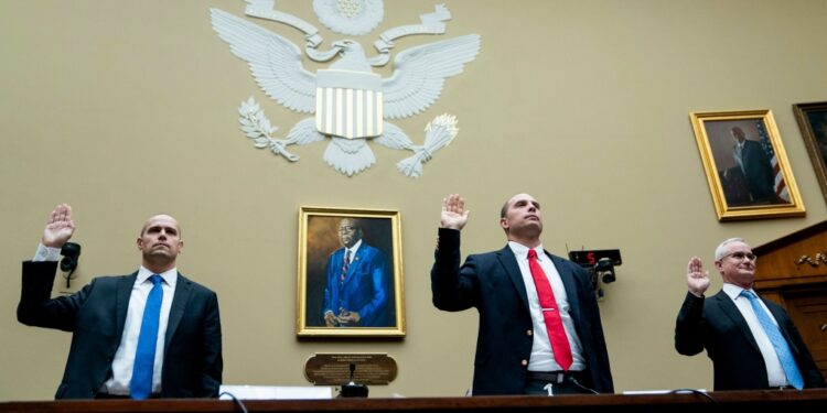 യുഎസിൽ തകർന്ന യുഎഫ്ഒകൾ വീണ്ടെടുക്കാനും റിവേഴ്സ് എഞ്ചിനീയർ ചെയ്യാനും ഓൾ-ഡൊമെയ്ൻ അനോമലി റെസൊല്യൂഷൻ ഓഫീസ് (എഎആർഒ) പതിറ്റാണ്ടുകളായി നടത്തിയ ശ്രമത്തെക്കുറിച്ച് മുൻ മിലിട്ടറി ഇന്റലിജൻസ് ഓഫീസറായ ഡേവിഡ് ഗ്രുഷ് സാക്ഷ്യപ്പെടുത്തി. സർക്കാരിന്റെ കൈവശം യുഎപികളും മനുഷ്യേതര ഓപ്പറേറ്റർമാരുടെ അവശിഷ്ടങ്ങളും ഉണ്ടെന്ന് “തികച്ചും” വിശ്വസിക്കുന്നതായി അദ്ദേഹം അവകാശപ്പെട്ടു. പെന്റഗൺ ഗ്രുഷിന്റെ കവർ-അപ്പ് അവകാശവാദങ്ങൾ നിഷേധിക്കുകയും അന്യഗ്രഹ മെറ്റീരിയൽ പ്രോഗ്രാമുകളുടെ നിലനിൽപ്പിനെ പിന്തുണയ്ക്കുന്ന സ്ഥിരീകരിക്കാവുന്ന തെളിവുകളൊന്നും ഇല്ലെന്നും പ്രസ്താവിക്കുകയും ചെയ്തു. എന്നാല്, അദ്ദേഹത്തിന്റെ ആരോപണങ്ങൾ മേൽനോട്ട സമിതിയുടെ അടിയന്തര അന്വേഷണത്തിന് പ്രേരിപ്പിച്ചു.