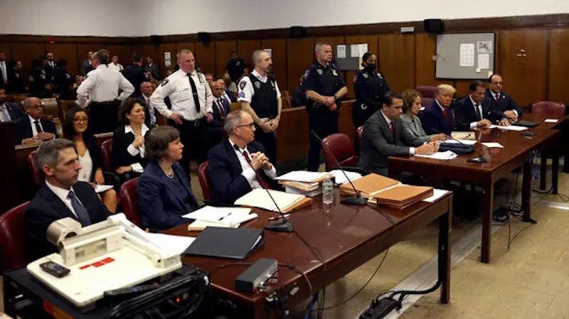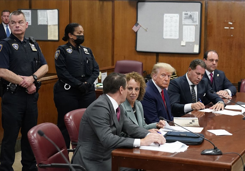 ന്യൂയോർക്കിലെയും മിയാമിയിലെയും മുൻ വിചാരണകളില് വിരലടയാളം രേഖപ്പെടുത്തിയിരുന്നുവെങ്കിലും കൈവിലങ്ങ് ഇട്ടിരുന്നില്ല. അദ്ദേഹത്തിന്റെ മഗ്ഷോട്ട് എടുത്തിരുന്നില്ല. ന്യൂയോർക്കിലെ കോടതി മുറിയിൽ ക്യാമറകൾ അനുവദിച്ചിരുന്നു, എന്നാൽ മിയാമിയിലോ ഡിസിയിലോ അതുണ്ടായില്ല. ഇന്നത്തെ കോടതി വ്യവഹാരത്തില് അദ്ദേഹത്തിന്റെ വിരലടയാളങ്ങള് രേഖപ്പെടുത്തുകയും മഗ്ഷോട്ട് എടുക്കുകയും ചെയ്തു.
