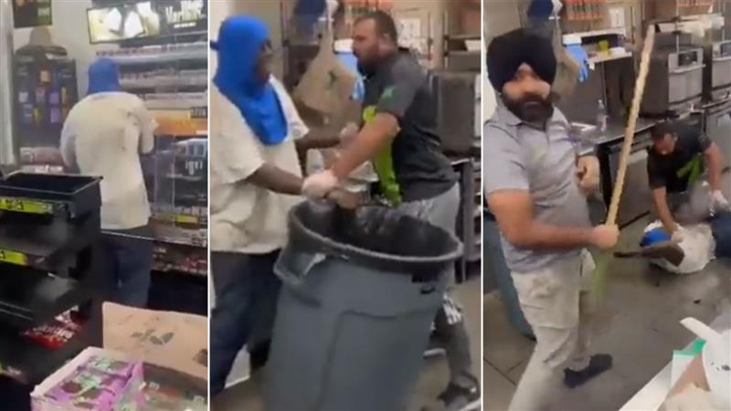 വൈറലായ വീഡിയോയിൽ, മുഖംമൂടി ധരിച്ച ഒരാൾ കടയിലെ ഷെല്ഫുകളില് നിന്ന് സിഗരറ്റും മറ്റ് ഉൽപ്പന്നങ്ങളും കാലിയാക്കുന്നതായി കാണാം. കടയിലെ രണ്ട് ജീവനക്കാർ അയാളെ തടയാന് ശ്രമിക്കുന്നുണ്ട്. ഒരു വലിയ കണ്ടെയ്നറില് സാധനങ്ങളെല്ലാം വാരിവലിച്ചിട്ട് സ്റ്റോറില് നിന്ന് പുറത്തുകടക്കാന് ശ്രമിക്കുന്ന മോഷ്ടാവിനെ ഒരു സ്റ്റോര് ജീവനക്കാരന് തടയുന്നതും നിലത്തു വീണ മോഷ്ടാവിനെ സിഖുകാരൻ വടികൊണ്ട് അടിക്കുന്നതും ക്ലിപ്പ് കാണിക്കുന്നു.