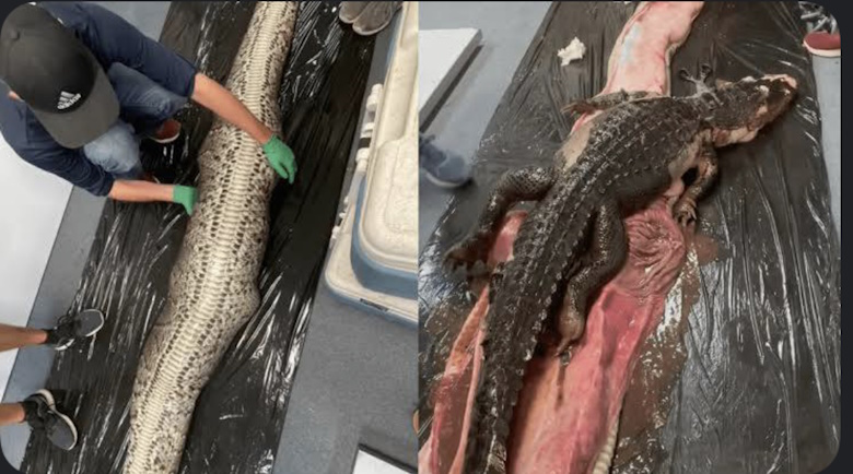 ഫ്ലോറിഡ: ഗവേഷകർ കൂറ്റൻ ബർമീസ് പെരുമ്പാമ്പിനുള്ളിൽ 5-അടി അലിഗേറ്ററിനെ കണ്ടെത്തി.ഫ്ലോറിഡ എവർഗ്ലേഡ്സിൽ കണ്ടെത്തിയ 18 അടി നീളമുള്ള ബർമീസ് പെരുമ്പാമ്പിന്റെ വയറ്റിൽ നിന്ന് 5 അടി നീളമുള്ള ചീങ്കണ്ണിയെ വലിച്ചെടുക്കുന്ന വീഡിയോ സോഷ്യൽ മീഡിയയിൽ വൈറലാണ്.