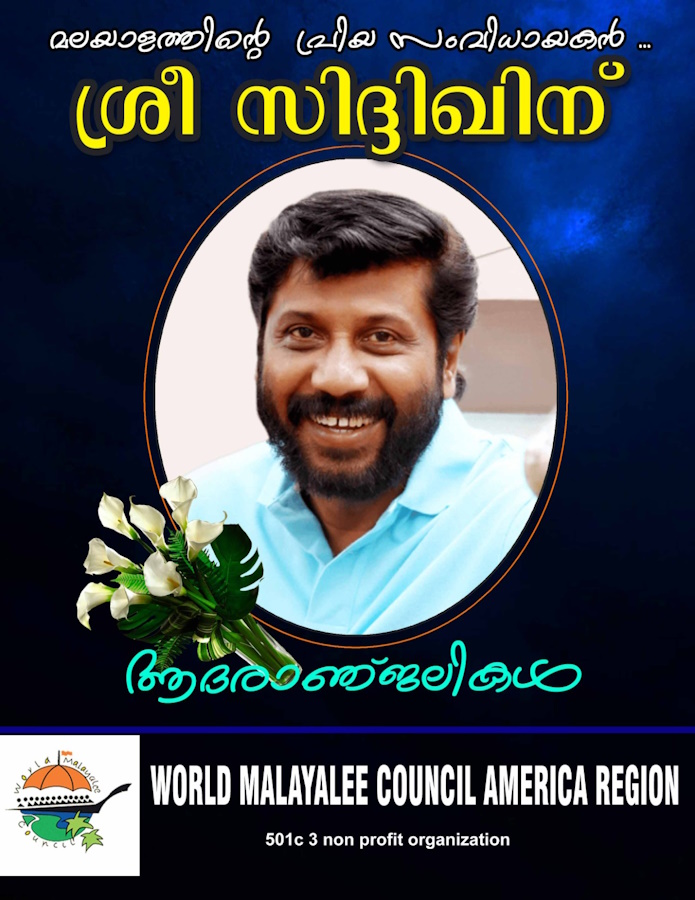 സിദ്ദിഖിന്റെ അകാല വിടവാങ്ങലില് വേള്ഡ് മലയാളി കൗണ്സില് അമേരിക്ക റീജിയൻ എക്സിക്യൂട്ടീവ് കമ്മിറ്റിക്കു വേണ്ടി ജേക്കബ് കുടശനാട് (ചെയര്മാന്), ജിനേഷ് തമ്പി (പ്രസിഡന്റ്), സിജു ജോണ് (സെക്രട്ടറി), തോമസ് ചെല്ലേത്ത് (ട്രഷറര്), ബൈജുലാൽ ഗോപിനാഥൻ (വിപി , അഡ്മിൻ), സന്തോഷ് എബ്രഹാം (മീഡിയ ചെയർ ) എന്നിവരോടൊപ്പം ഗ്ലോബല് വൈസ് പ്രസിഡന്റ് (അമേരിക്ക റീജിയന്) ഡോ തങ്കം അരവിന്ദും അനുശോചനം രേഖപ്പെടുത്തി