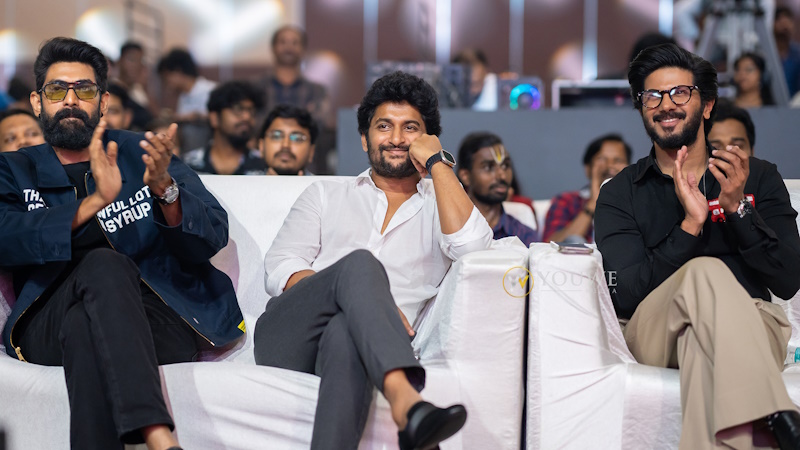 ഇന്റെർറ്റൈൻമെന്റിന്റെ എല്ലാ ചേരുവകളും ഒരു കുടക്കീഴിലാക്കി കിംഗ് ഓഫ് കൊത്ത പ്രേക്ഷകരിലേക്കെത്താൻ ഇനി പത്തു ദിവസങ്ങൾ ബാക്കി നിൽക്കെ ഗംഭീര പ്രൊമോഷൻ പരിപാടികൾക്ക് തുടക്കമിട്ട് കിംഗ് ഓഫ് കൊത്ത ടീം. ഇന്നലെ ഹൈദരാബാദ് ജെ ആർ സി കൺവെൻഷൻ സെന്ററിൽ നടന്ന പ്രി റിലീസ് ഇവെന്റിൽ റാണാ ദഗുപതി, നാനി എന്നിവർ മുഖ്യാതിഥികൾ ആയിരുന്നു. ദുൽഖർ സൽമാൻ, ഷബീർ കല്ലറക്കൽ ,ഐശ്വര്യാ ലക്ഷ്മി, അനിഖ സുരേന്ദ്രൻ എന്നിവർ സന്നിഹിതരായിരുന്നു. ചടങ്ങിലെത്തിയ ആരാധകരോട് മലയാളത്തിൽ തന്നെ ദുൽഖർ പറഞ്ഞത് “എല്ലാ നാട്ടുകാർക്കും ഒരുപാട് സ്നേഹം,ഇഷ്ടം. ഇരുപത്തി നാലാം തീയതി കറങ്ങി നടക്കാതെ തിയേറ്ററിൽ പോയി സിനിമ കാണണം പ്ലീസ്” ഇപ്രകാരമാണ്. ഹർഷാരവത്തോടെയാണ് ദുൽഖറിന്റെ വാക്കുകൾ ആരാധകർ ഏറ്റെടുത്തത്.