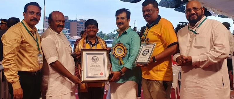ആലപ്പുഴ: ഈ തവണ ട്രോഫികളോടൊപ്പം മാലിയിൽ പുളിക്കത്ര തറവാട്ടിലെത്തിയ വേൾഡ് റിക്കോർഡിൽ മുത്തശ്ശി മോളി ജോൺ മുത്തമിട്ടു. കഴിഞ്ഞ ഒരു നൂറ്റാണ്ടായി ജല കായിക മത്സര രംഗത്ത് ഇതിഹാസം രചിച്ച് ലോകമെങ്ങുമുള്ള കുട്ടനാടന് ജലോത്സവ പ്രേമികള്ക്ക് ആവേശവും അതുല്യമായ പെരുമയും സമ്മാനിച്ച എടത്വ പാണ്ടങ്കരി മാലിയില് പുളിക്കത്ര തറവാട് യു.ആർ.എഫ് ലോക റിക്കോർഡിൽ ഇടം പിടിച്ചു.