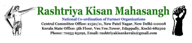 കൊച്ചി: സര്ക്കാരിന്റെ കാര്ഷികമേഖലയോടുള്ള അവഗണനയിലും കര്ഷകദ്രോഹ സമീപനത്തിലും പ്രതിഷേധിച്ച് ചിങ്ങം ഒന്നിലെ സര്ക്കാര്വക കര്ഷക ദിനാചരണം ബഹിഷ്കരിച്ച് കര്ഷകരുടെ പട്ടിണിസമരം പ്രഖ്യാപിച്ച് കര്ഷക സംഘടനകളുടെ ദേശീയ ഐക്യവേദിയായ രാഷ്ട്രീയ കിസാന് മഹാസംഘ്. പട്ടിണിസമരത്തിന്റെ ഭാഗമായി 100 കേന്ദ്രങ്ങളില് കര്ഷക പ്രതിഷേധം സംഘടിപ്പിക്കും.