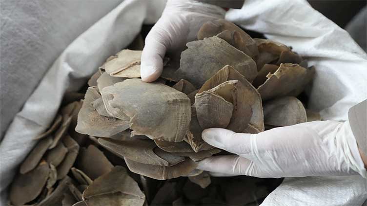 വ്യാഴാഴ്ച ബാങ്കോക്കിൽ നടന്ന വാർത്താ സമ്മേളനത്തിനിടെ പ്രദർശിപ്പിച്ച ചെതുമ്പലുകള് ഉണക്കി ചൈനീസ് ഭാഷയില് എഴുതിയ വ്യത്യസ്ത നമ്പറുകളുമുള്ള വളച്ചാക്കില് സൂക്ഷിച്ചിരിക്കുകയായിരുന്നു. ചെതുമ്പലുകളുടെ ഗുണനിലവാരം അടയാളപ്പെടുത്തുന്നതിന് ഈ നമ്പറുകളാണ് ഉപയോഗിക്കുന്നതെന്ന് സംശയിക്കുന്നതായി അധികൃതർ പറഞ്ഞു.