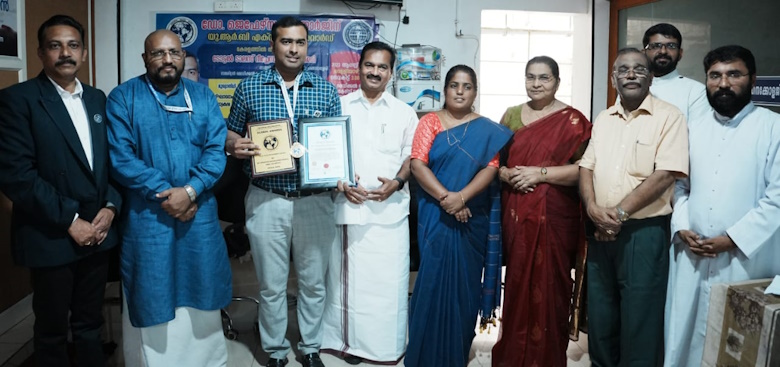 ചങ്ങനാശേരി: കേരളത്തിൽ ആദ്യം വിജയകരമായി ടോട്ടൽ ടാലസ് റീപ്ലേസ്മെൻ്റ് സർജറി നടത്തിയ മുട്ടുമാറ്റിവെയ്ക്കൽ ശസ്ത്രക്രിയ വിദഗ്ദ്ധൻ ഡോ. ജെഫേഴ്സൺ ജോർജ്ജിന് യു.ആർ.ബി എക്സലൻസ് അവാർഡ് നല്കി.