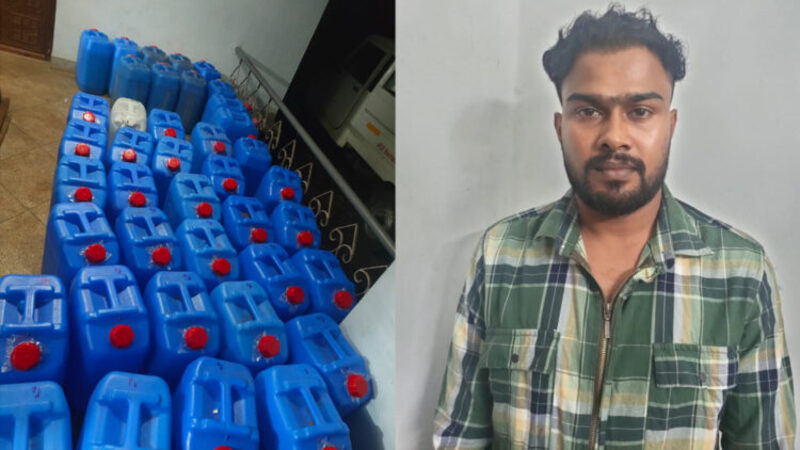 പ്രദേശത്ത് വ്യാജമദ്യ ഉൽപ്പാദനവും വിതരണവും നടക്കുന്നുണ്ടെന്ന രഹസ്യ വിവരത്തിന്റെ അടിസ്ഥാനത്തിലാണ് പോലീസ് സംഘം പരിശോധന ആരംഭിച്ചത്. പുതുക്കാട് സ്ഥിതി ചെയ്യുന്ന ഒരു ഒറ്റപ്പെട്ട കെട്ടിടത്തിൽ പ്രവര്ത്തിക്കുന്ന ഗോഡൗണിൽ നിന്നാണ് അരുണിനെ പോലീസ് സംഘം പിടികൂടിയത്.
