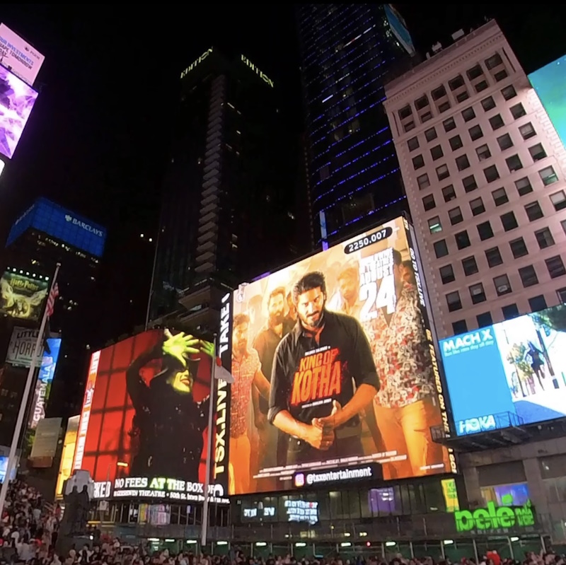 ന്യൂയോര്ക്ക്: ഓണത്തിന് പ്രേക്ഷകരിലേക്കെത്തുന്ന ദുൽഖർ സൽമാന്റെ പാൻ ഇന്ത്യൻ ചിത്രം കിംഗ് ഓഫ് കൊത്തയുടെ പ്രൊമോഷൻ ന്യൂയോർക്കിലെ ടൈംസ് സ്ക്വയറിലും എത്തി. മലയാള സിനിമാ ചരിത്രത്തിലാദ്യമായാണ് ടൈംസ് സ്ക്വയറിൽ ഒരു ചിത്രത്തിന്റെ പ്രൊമോഷൻ നടക്കുന്നത്. അഭിലാഷ് ജോഷി സംവിധാനം നിർവഹിച്ച കൾട്ട് ക്ളാസ്സിക് ചിത്രത്തിന്റെ ഗംഭീര പ്രൊമോഷൻ പരിപാടികൾ ലോകവ്യാപകമായി നടക്കുമ്പോൾ ഗംഭീര പ്രീ ബുക്കിങ് ആണ് ചിത്രത്തിന് ലഭിക്കുന്നത്. മലയാള സിനിമയിൽ ഇതുവരെ കണ്ടിട്ടില്ലാത്ത വേറിട്ട പ്രൊമോഷൻ പരിപാടികൾ ആണ് കിംഗ് ഓഫ് കൊത്തയുടെ ഭാഗമായി നടക്കുന്നത്. ഇന്ത്യയിലെ വ്യത്യസ്ത ഭാഷകളിൽ മികച്ച സിനിമകൾ നിർമ്മിച്ച സീ സ്റ്റുഡിയോസും ദുൽഖറിന്റെ വേഫേറെർ ഫിലിംസും നിർമ്മിച്ച ചിത്രം ലോകവ്യാപകമായി ആഗസ്റ്റ് 24 നു തിയേറ്ററുകളിലേക്കെത്തും.