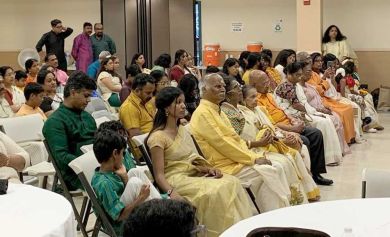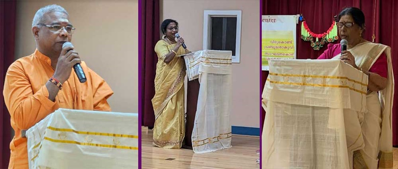 വെർജീനിയയിലെ പ്രസിദ്ധമായ ദുർഗ്ഗ ക്ഷേത്രം ഓഡിറ്റോറിയത്തിൽ നടന്ന ചടങ്ങുകളിൽ, ശിവഗിരി മഠത്തിലെ സന്യാസി ശ്രേഷ്ഠൻ ശ്രീമദ് ശങ്കരാനന്ദ സ്വാമികൾ മുഖ്യാതിഥി ആയിരുന്നു. ശ്രീമതി മിനി അനിരുദ്ധൻ ഭക്തിനിർഭരമായി ആലപിച്ച ദൈവദശകം പ്രാർത്ഥനാഗീതത്തോടെ ആരംഭിച്ച പരിപാടികൾ, സ്വാമിജിയുടെ വിജ്ഞാനപ്രദമായ പ്രഭാഷണം, കുടുംബാംഗങ്ങൾ അവതരിപ്പിച്ച മനോഹരമായ തിരുവാതിര, മറ്റു കലാപരിപാടികൾ, ഓണക്കളികൾ, എന്നിവ കൊണ്ട് സദസ്സിന് വേറിട്ട ഒരു അനുഭവം സമ്മാനിച്ചു.