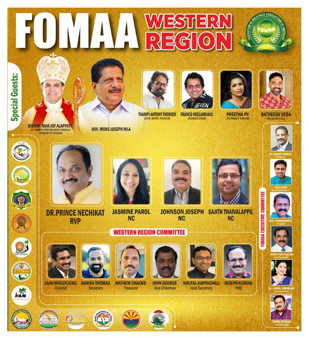 വെസ്റ്റേൺ റീജിയൻ ആർ വി പി ഡോ. പ്രിൻസ് നെച്ചിക്കാട്ട് വെസ്റ്റേൺ റീജിയൻന്റെ പ്രവർത്തനങ്ങൾ വിശദീകരിച്ചു . വിവിധ കമ്മിറ്റികളുടെ നേതൃത്വത്തിൽ വിപുലമായ ഒരു കർമ്മപദ്ധതിയാണ് ലക്ഷ്യമിട്ടിരിക്കുന്നത്. സ്ത്രീ ശാക്തീകരണത്തിനും , ഇളം തലമുറയെ ബിസിനസ്സ് രാഷ്ട്രീയ രംഗങ്ങളിലേയ്ക്ക് കൈ പിടിച്ചു കൊണ്ടുവരുന്ന തിനും ശ്രമിക്കും . ഏതൊരു സംരഭത്തിനും പിന്തുണ നൽകുന്ന നേതൃത്വ നിരയെ അഭിനന്ദിച്ചു , ഒപ്പം ജനങ്ങളുടെ എന്ത് ആവശ്യത്തിനും ഫോമാ ഒപ്പമുണ്ടാകുമെന്ന് വാഗ്ദാനം ചെയ്തു .