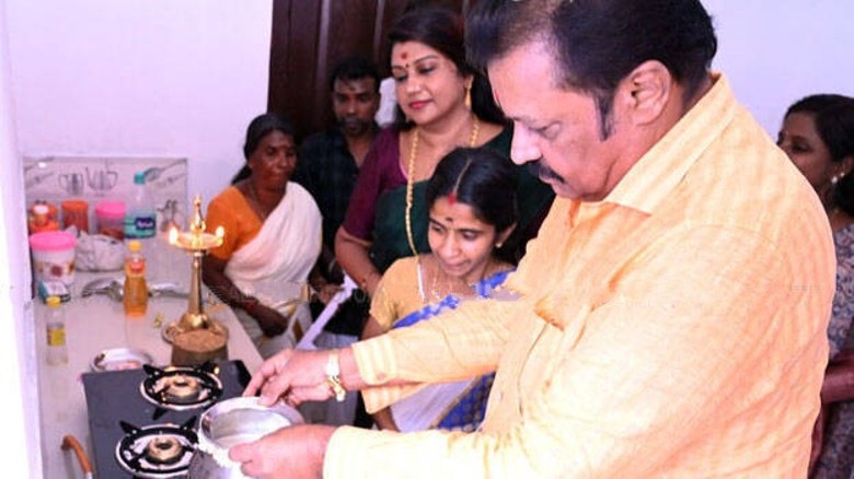 എ.കെ.ജി കോളനിയിലെ കണ്ണനും കുടുംബത്തിനുമാണ് വീട് നിര്മ്മിച്ച് നല്കിയത്. പുതിയ വീട്ടിലേക്ക് ഭഗവാന് കൃഷ്ണന്റെ വിഗ്രഹവുമായി പ്രവേശിച്ച സുരേഷ്ഗോപി നിലവിളക്ക് കൊളുത്തി പാലുകാച്ചല് ചടങ്ങ് നടത്തി. പാല്പ്പായസം ഗണപതി ഭഗവാന് സമര്പ്പിച്ചു.