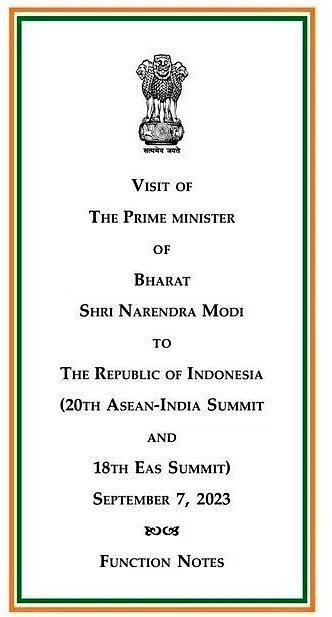 പ്രധാനമന്ത്രി മോദിയുടെ ഇന്തോനേഷ്യൻ സന്ദർശനത്തിന്റെ ഔദ്യോഗിക പ്രഖ്യാപനത്തിൽ “ഇന്ത്യ” ഒഴിവാക്കിയത്, എല്ലാ ഔദ്യോഗിക സന്ദർഭങ്ങളിലും ‘ഇന്ത്യ’ എന്നതിനുപകരം ‘ഭാരത്’ എന്ന പേരുപയോഗിക്കുന്നതിനുള്ള സർക്കാർ ഊന്നൽ നൽകുന്നതായിട്ടാണ് വ്യാഖ്യാനിക്കപ്പെടുന്നത്.
