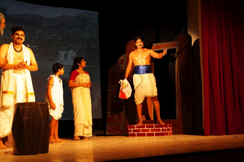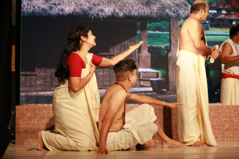 രാജേഷ് കൈമൾ എന്ന കലാകാരൻ അഭിനയിക്കുകയായിരുന്നില്ല , മറിച്ച്, നാടകത്തിലുടനീളം എഴുത്തച്ഛനായി പരകായപ്രവേശം നടത്തുകയായിരുന്നു.