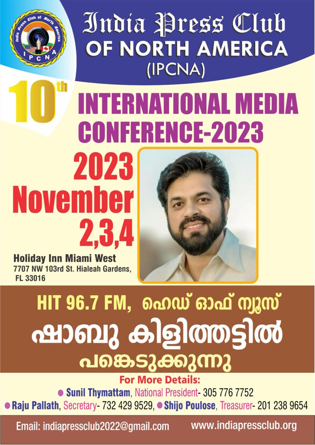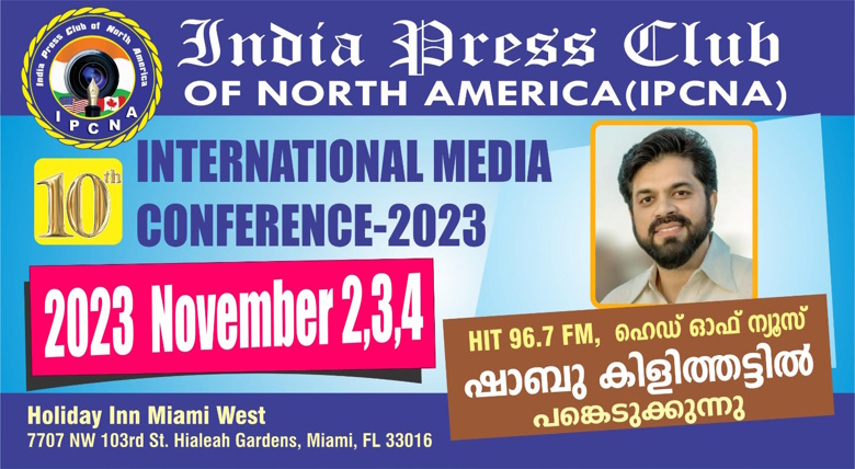 2023 നവംബർ 2 മുതൽ 4 വരെ മയാമിയിലുള്ള ഹോളിഡേ ഇൻ മയാമി വെസ്റ്റ് ഹോട്ടലിൽ നടക്കുന്ന ഇന്ത്യ പ്രസ് ക്ലബ് ഓഫ് നോർത്ത് അമേരിക്ക (IPCNA ) അന്താരാഷ്ട്ര മാധ്യമ സമ്മേളനത്തിൽ ഇന്ത്യ പ്രസ് ക്ലബ് ഓഫ് നോർത്ത് അമേരിക്കയുടെ പ്രഥമ റേഡിയോ മാധ്യമ പുരസ്കാരം ലഭിച്ച ഷാബു കിളിത്തട്ടിലിനാണ് പങ്കെടുക്കും.