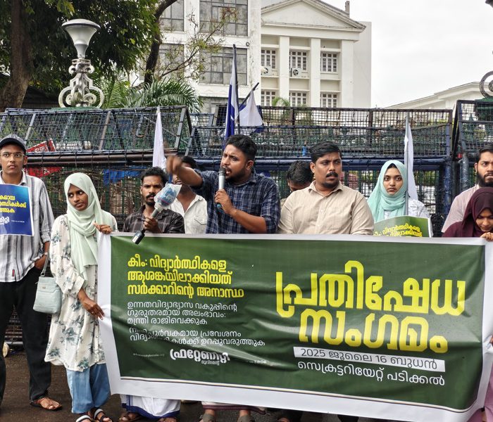 മലപ്പുറം : വിധേയപ്പെടാത്ത വിദ്യാർത്ഥിത്വം ആത്മാഭിമാനത്തിന്റെ രാഷ്ട്രീയം എന്ന തലക്കെട്ടിൽ ഫ്രറ്റേണിറ്റി മൂവ്മെന്റ് ജില്ല പ്രസിഡന്റ് ജംഷീൽ അബൂബക്കർ നയിക്കുന്ന ക്യാമ്പസ് കാരവനിന് തുടക്കമായി. രാവിലെ 9 മണിക്ക് പി എസ് എം ഓ കോളേജിൽ വെച്ച് ഫ്രറ്റേണിറ്റി സംസ്ഥാന ജനറൽ സെക്രട്ടറി അർച്ചന പ്രജിത്ത് പതാക കൈമാറി ഉദ്ഘാടനം നിർവഹിച്ചു.