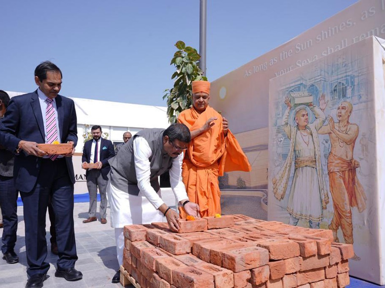 Blessed to offer puja and lay a ceremonial brick at the grand @BAPS Hindu temple that is under construction in Abu Dhabi.