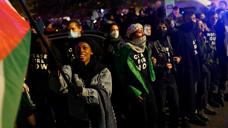 ഇസ്രായേൽ അനുകൂല റാലിയിൽ ആയിരക്കണക്കിന് ആളുകൾ നാഷണൽ മാളിൽ തടിച്ചുകൂടിയതിന് തൊട്ടുപിന്നാലെയാണ് അക്രമാസക്തമായ പ്രകടനം നടന്നത്.