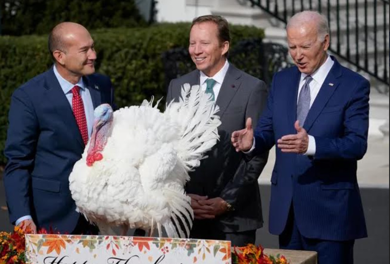 ദേശീയ താങ്ക്സ്ഗിവിംഗ് ടർക്കി ആഘോഷത്തിന്റെ 76-ാം വാർഷികമായിരുന്നു .ഡെമോക്രാറ്റിക്, റിപ്പബ്ലിക്കൻ പ്രസിഡന്റുമാർ ഭാഗ്യവാനായ ടർക്കികൾക്ക് മാപ്പ് നൽകിയിട്ടുണ്ട്, പക്ഷേ അവർ യഥാർത്ഥത്തിൽ ഒരു കുറ്റകൃത്യത്തിനും ശിക്ഷിക്കപ്പെട്ടിട്ടില്ല. 2021-ൽ പീനട്ട് ബട്ടറിനും ജെല്ലിക്കും കഴിഞ്ഞ വർഷത്തെ ലഘുവായ ചടങ്ങിൽ ചോക്ലേറ്റിനും ചിപ്പിനും ബൈഡൻ മാപ്പുനൽകിയിരുന്നു