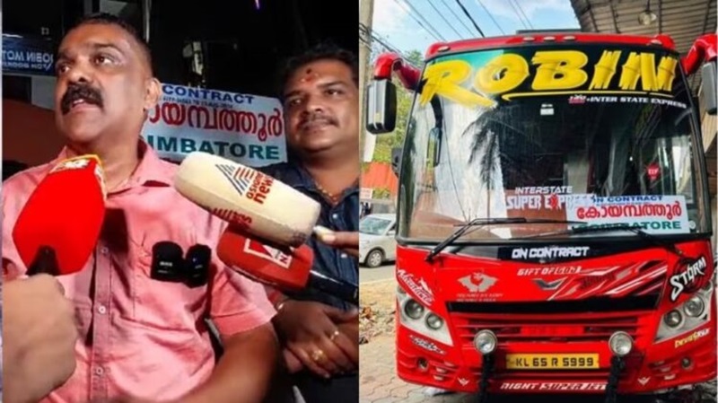 റോബിന്‍ ബസ്സിനെ വിടാതെ പിന്തുടര്‍ന്ന് മോട്ടോര്‍ വാഹന വകുപ്പ്; ഓട്ടം കഴിഞ്ഞ് കോയമ്പത്തൂരിൽ നിന്ന് തിരിച്ചെത്തിയ ബസിനെ പത്തനംതിട്ട എംവിഡി പിടികൂടി