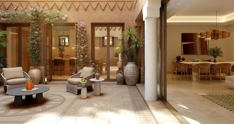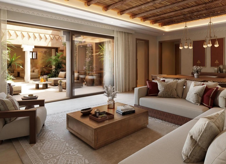 ദിരിയയിലെ റിറ്റ്സ്-കാൾട്ടൺ റെസിഡൻസസ്, നജ്ദി പൈതൃകത്തിൽ നിന്ന് പ്രചോദനം ഉൾക്കൊണ്ട്, ക്ഷേമത്തിനായുള്ള പ്രതിബദ്ധതയ്ക്കൊപ്പം ആധുനിക സുഖസൗകര്യങ്ങളെ തടസ്സമില്ലാതെ സമന്വയിപ്പിക്കുന്ന ഗംഭീരവും പരമ്പരാഗതവുമായ വില്ലകൾ വാഗ്ദാനം ചെയ്യുന്നു.