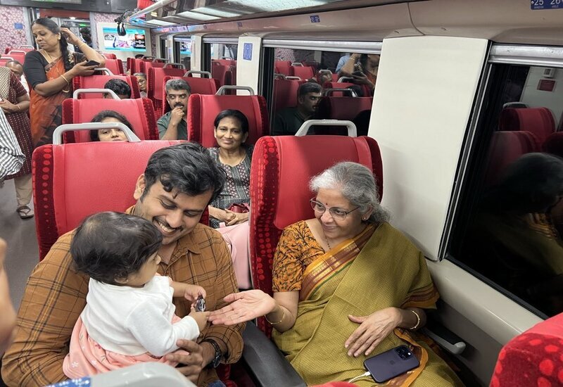 എക്സ് അക്കൗണ്ടിലൂടെ പങ്കുവെച്ചത്. ഇതൊരു ‘സുഖകരമായ അനുഭവം’ എന്നും ‘യാത്രക്കാരുമായി ഇടപഴകാനുള്ള മികച്ച അവസരം’ എന്നും വിശേഷിപ്പിച്ച അവർ ട്രെയിൻ യാത്രയോടുള്ള തന്റെ ഇഷ്ടം പ്രകടിപ്പിച്ചു. യാത്രയ്ക്കിടെ നിരവധി സഹയാത്രികർ മന്ത്രി നിർമല സീതാരാമനൊപ്പം സെൽഫിയെടുത്തു.