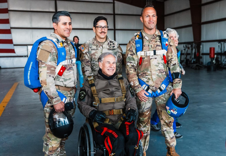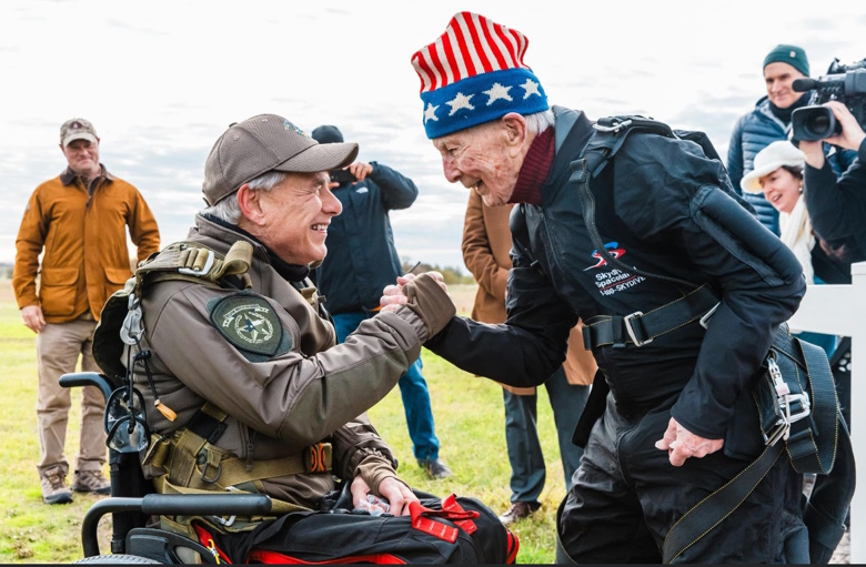 106 വയസ്സുള്ള രണ്ടാം ലോകമഹായുദ്ധ സേനാനിക്കൊപ്പം ടെക്സസ് ഗവർണറുടെ സാഹസിക സ്കൈഡൈവ്