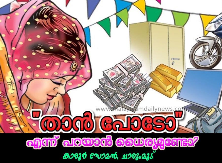 ഗൾഫിലും, കൂടുതൽ ആഫ്രിക്കൻ രാജ്യങ്ങളിലും സ്ത്രീധനം പെണ്ണിനാണ് നൽകുന്നത്. അത് വിലപ്പിടിപ്പുള്ള വസ്തുക്കളെക്കാൾ ആടുമാടുകളാണ്. വികസിത രാജ്യങ്ങളിൽ ഈ സമ്പ്രദായമില്ല. സാമൂഹ്യ സാംസ്കാരിക മേഖലയിൽ വായിച്ചു വളർന്നവർക്ക് പൈശാചിക പരിപാടികൾക്ക് കൂട്ടുനിൽക്കാൻ സാധിക്കില്ല. നമ്മുടെ നാട്ടിൽ തൃശൂർ പൂരത്തിന് ആനകളുടെ നെറ്റിപട്ടത്തിൽ കാണുന്നതുപോലെ സ്വർണ്ണ തിളക്കം വിവാഹദിവസം പെണ്ണിന്റെ നെറ്റിയിലും നെഞ്ചിലും ശരീരമാകെ പ്രദർശിപ്പിക്കാറുണ്ട്. ഒരു പെൺകുട്ടിയുടെ ജീവിതത്തിൽ തൃശൂർ പുരംപോലെ അവളെ പ്രദർശനവസ്തുവാക്കുന്ന ഒരേയൊരു ദിവസമാണ് വിവാഹ ദിനം. ആ പവിഴപ്രഭയിൽ പുഞ്ചിരിക്കുന്ന മാതാപിതാക്കൾ. സ്വർണ്ണാഭരണങ്ങൾ ഊർന്നുവീണുപോകാതെ നോക്കി നിൽക്കുന്ന ഭർത്താവിന്റ വീട്ടുകാർ. ആ സ്വർണ്ണകിലുക്കം കണ്ട് രസിക്കുന്ന വിരുന്നുണ്ണാൻ വന്നവർ. വിഭവസമൃദ്ധമായ സദ്യ വലിച്ചുവാരിവിഴുങ്ങി പുറത്തുവന്നിട്ട് അതിനും കുറ്റം പറയും. മലയാളിയുടെ സഹജമായ സ്വഭാവ ഗുണങ്ങളാണല്ലൊ പരദൂഷണം, അസൂയ, പൊങ്ങച്ചം. ഒരു സ്ത്രീയുടെ ശരീരശോഭ സ്വർണ്ണത്തിൽ പൊതിയുന്ന ആനയെഴുന്നെള്ളത്തു് കേരളത്തിലല്ലാതെ ലോകത്തു് മറ്റെങ്ങും കാണില്ല. ഈ വിവാഹ ധൂർത്തു കണ്ടാണ് പാവങ്ങൾ വീടുവരെ പണയപ്പെടുത്തി പെൺകുട്ടികളുടെ വിവാഹം നടത്തുന്നത്. ധനസമ്പത്തിൽ അഹംഭാവവും പൊങ്ങച്ചവുമുള്ളവരാണ് സ്വർണ്ണചങ്ങലയിട്ട് പെൺകുട്ടികളെ ആഘോഷവസ്തുവാക്കുന്നത്. സ്വന്തം മകൾ പോന്നെന്ന് ജന്മം കൊടുത്ത മാതാപിതാക്കൾക്കുപോലുമറിയില്ല. പൊന്നിൻകുടത്തിന് സ്വർണ്ണപൊട്ട് ആവശ്യമില്ല അതാണ് പാശ്ചാത്യരുടെ അറിവിന്റെ സംസ്കാരം. കുട്ടികളെ വായിച്ചുവളർത്താതിന്റെ ദുരന്തമാണ് ഇന്ന് കാണുന്നത്.