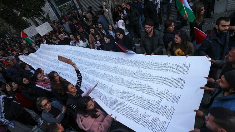 പലസ്തീൻ അതോറിറ്റിയുടെ ആസ്ഥാനമായ റാമല്ലയിൽ നടന്ന റാലിയിൽ പ്രതിഷേധക്കാർ ഗാസയിലെ ഇരകളുടെ പേരുകളുടെ ഒരു വലിയ പട്ടിക പുറത്തിറക്കി. കുട്ടികളെ ചുമലിലേറ്റി രക്ഷിതാക്കളുമായി കുടുംബങ്ങൾ ഒന്നടങ്കം പ്രതിഷേധവുമായി രംഗത്തെത്തി.